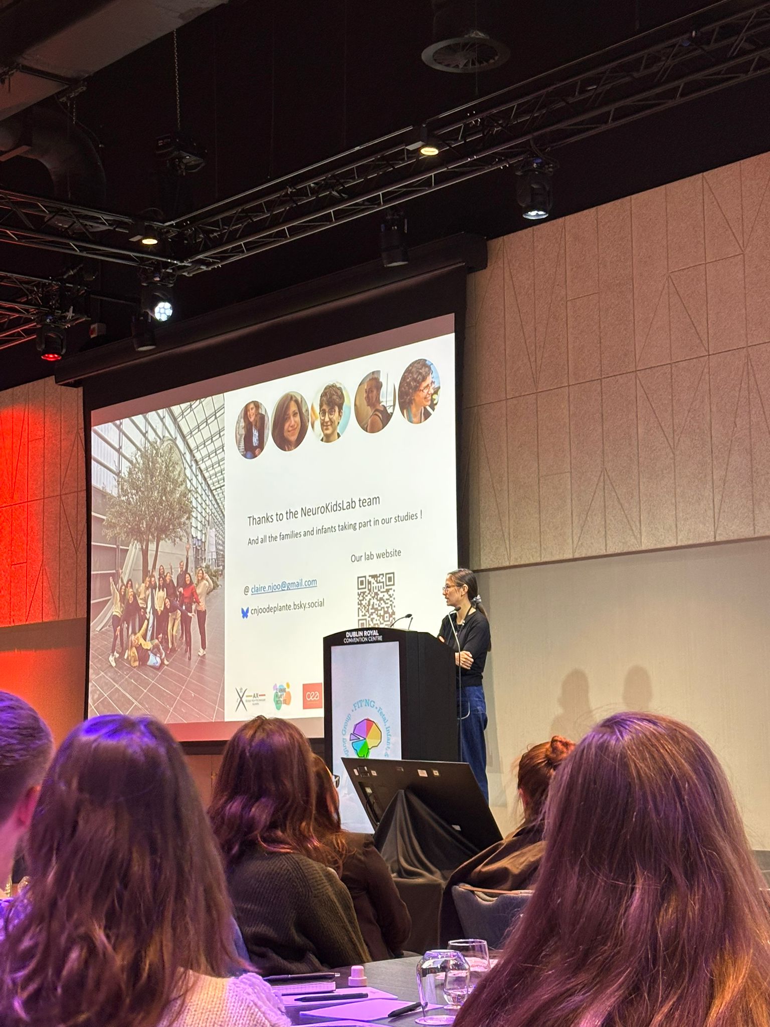 A Dublin, Claire Njoo a aussi participé à un symposium sur la thématique de l’exploration du développement sensoriel grâce à la neuroimagerie et la neurophysiologie fonctionnelle dans les premiers mois de vie. Elle a pu présenter le traitement phonétique de la parole chez les nouveau-nés et les nourrissons de 3 mois comme exemple d’exploration des représentations neurales qui permettent aux nourrissons de traiter des stimuli externes.