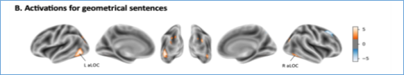 Nous avons d’abord confirmé qu’avant de commencer l’enseignement formel des mathématiques, les enfants utilisent déjà un réseau cortical similaire à celui des adultes pour les mathématiques, impliquant les sillons intrapariétaux gauche et droit, les gyri frontaux inférieurs et les gyri temporaux inférieurs (figure 1) ; avec une spécialisation partielle pour la géométrie dans le cortex occipito-temporal inférieur postérieur.