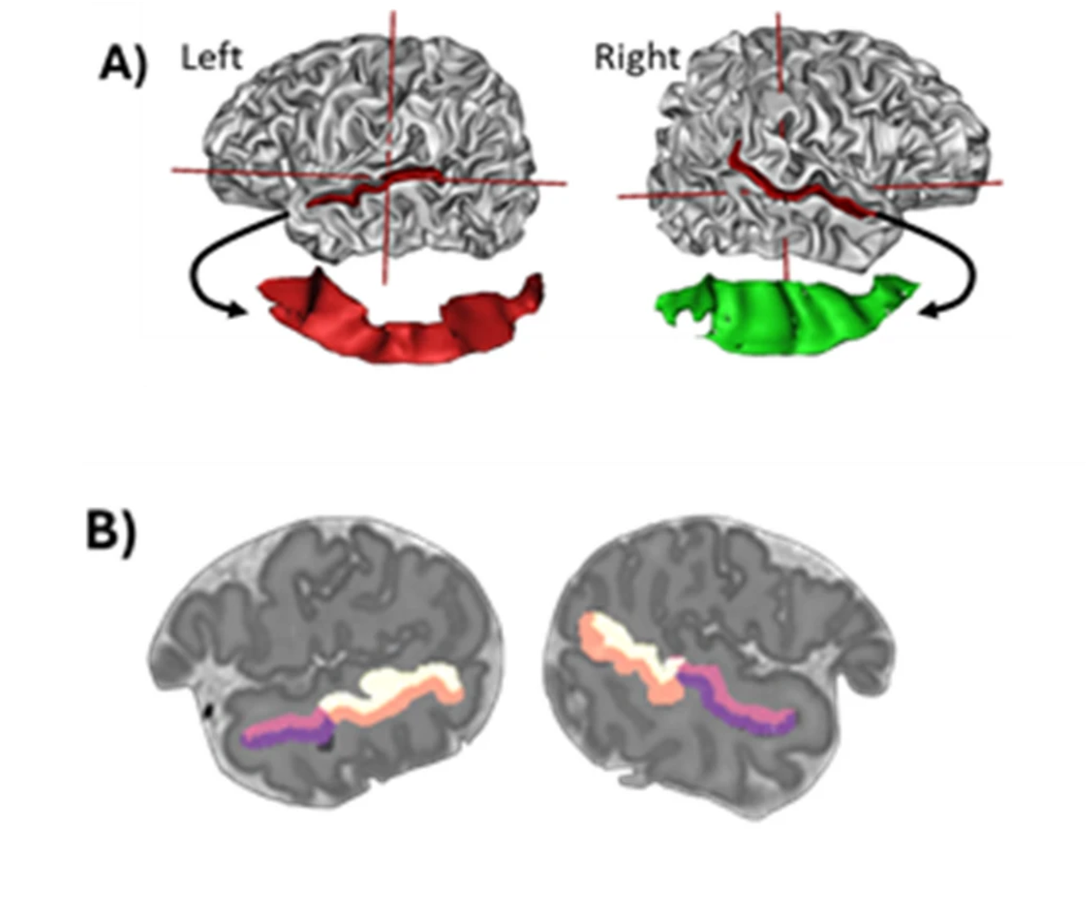 Le sillon temporal supérieur (STS) est une zone clé du cerveau impliquée dans le traitement des sons et du langage qui se développe pendant le dernier trimestre de gestation. Notre étude s’intéresse à l’impact de l’environnement sonore précoce sur le développement de cette structure en comparant des bébés nés à terme et des bébés prématurés.